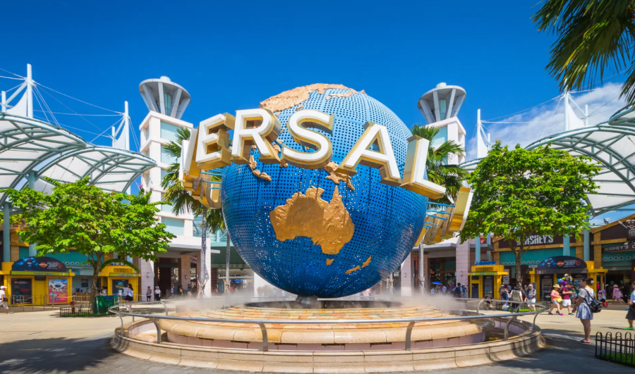 - Chụp hình với biểu tượng công viên giải trí Universal Studios