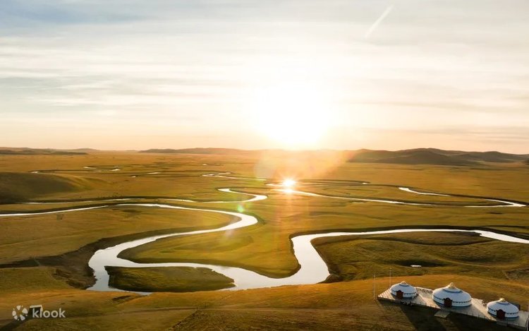 - Khu du lịch “Thảo nguyên ở đây”: Trên hành trình, du khách sẽ đến với một vùng thảo nguyên bao la như tấm thảm vàng khổng lồ, trải rộng đến tận chân trời. Dưới bầu trời xanh thẳm và mây trắng bồng bềnh, đàn bò đàn cừu thong dong gặm cỏ, ngựa phi nhàn nhã – tựa như một bức tranh mùa thu sống động, kể lại câu chuyện cổ xưa và tự do của đại thảo nguyên.